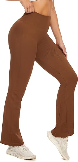 Flare Leggings for Women – No Front Seam High Waisted Tummy Control Ribbed Leggings Comfy Athletic Yoga Pants